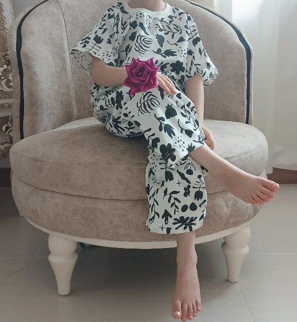 کراپ و شلوار دخترانه طرح گیاه ، جنس لنین